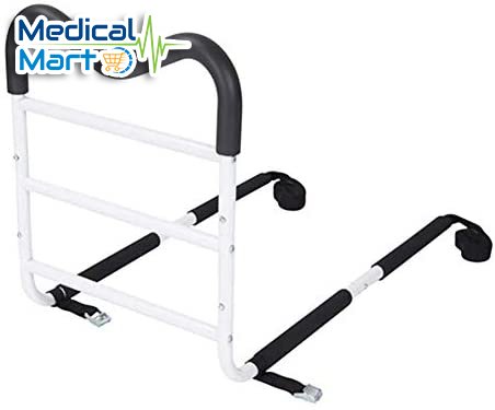 Medical Adjustable Bed Assist Rail Handle and Hand Guard Grab Bar, Bedside Safety and Stability (Tool-Free Assembly), White/Black