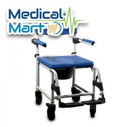 Aluminum Commode Chair W/ Grey Plastic Bucket-Armrest Features/Benefits : Can be positioned over a toilet or used as a portable self-contained commode Floor to seat height can be adjusted 4" without tools White aluminum frame is attractive and rust resistant Comes with padded seat back and arms and swing-away footrests