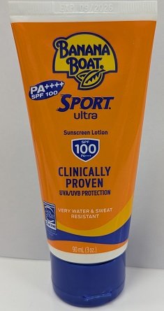 Banana Boat Sport Ultra 100 SPF Sunscreen provides strong, free-from-oxybenzone protection that absorbs quickly, is non-greasy and won't run into your eyes.