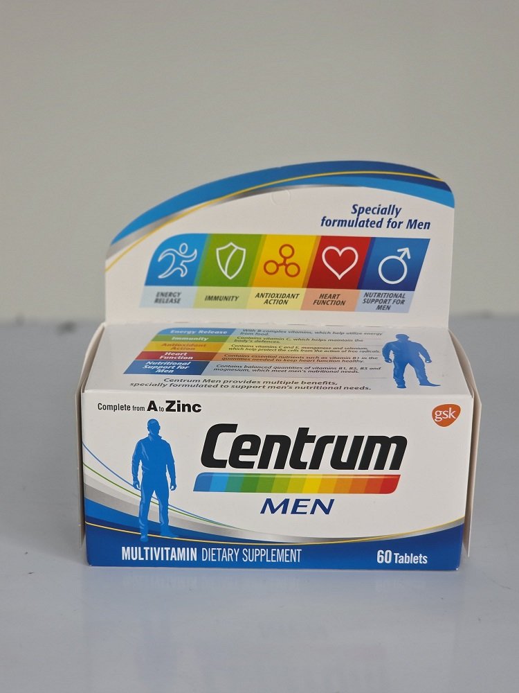 Centrum Men is a daily multivitamin supplement packed with essential nutrients.