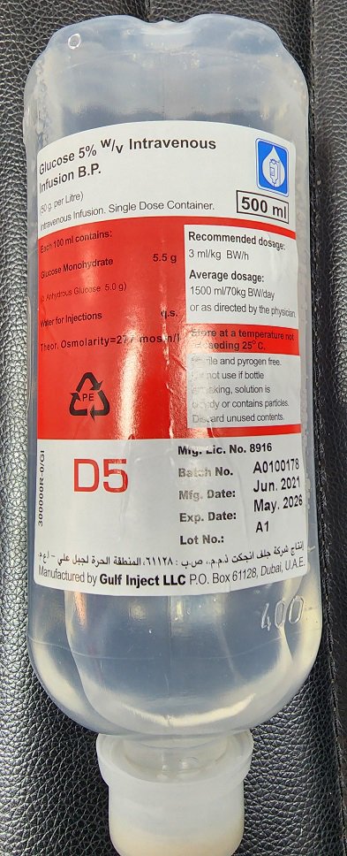 Dextrose is a form of glucose (sugar). Dextrose 5% in water is injected into a vein through an IV to replace lost fluids and provide carbohydrates to the body.