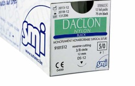 The Daclon nylon blue 5/0 DS 12 refers to a specific non-absorbable, monofilament surgical suture with a DS 12 reverse cutting needle used primarily for skin closure and microsurgery.