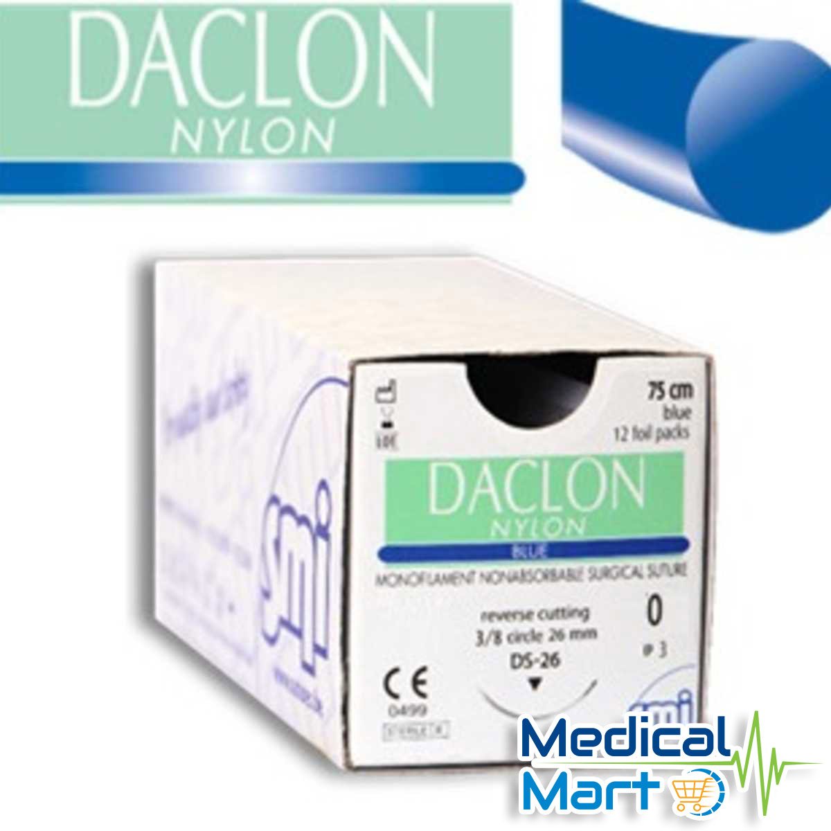 Daclon Nylon, Blue, Surgical Suture (75CM)