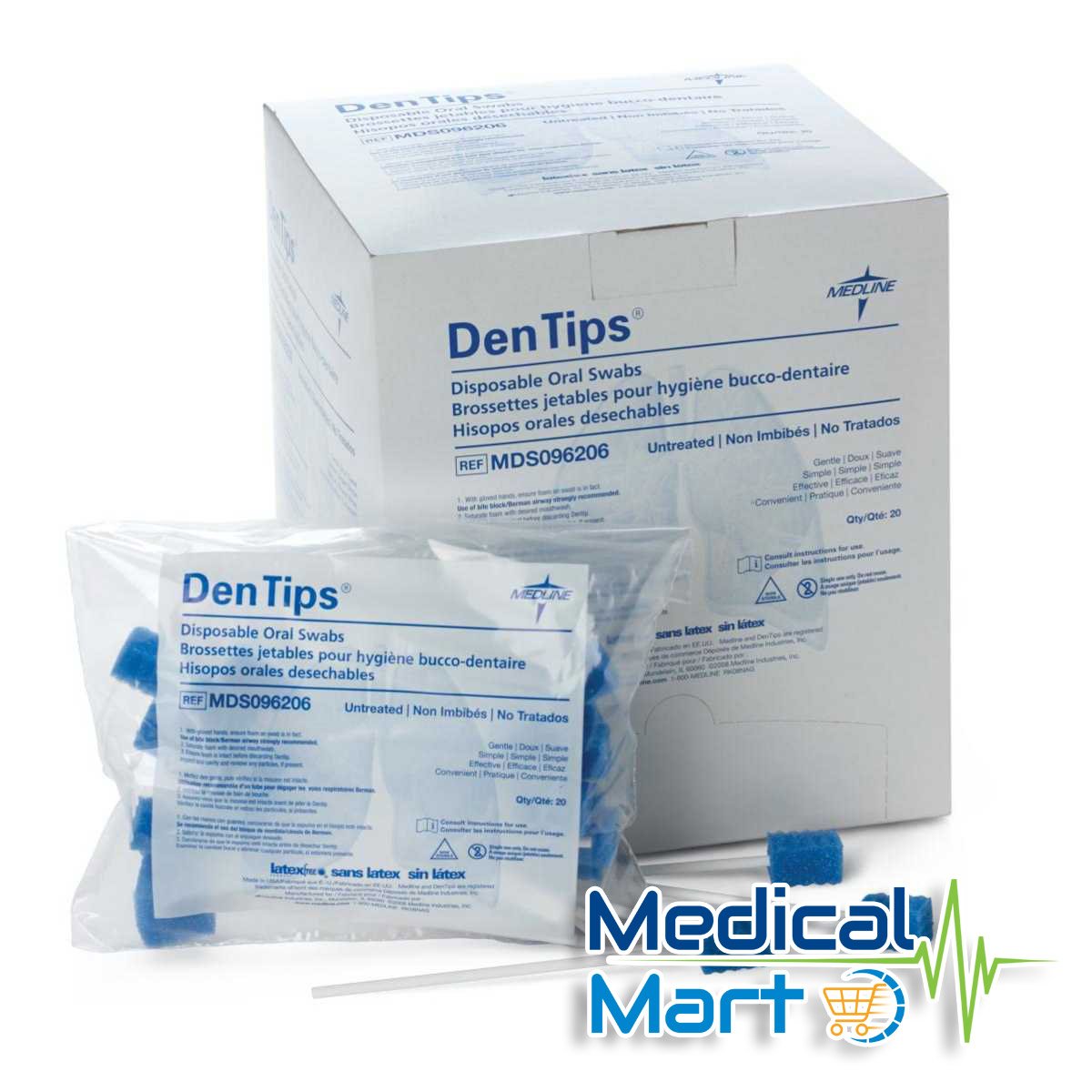 - Medline’s disposable oral swabs feature a color coding system for Treated (green) or Untreated (blue) swabs.