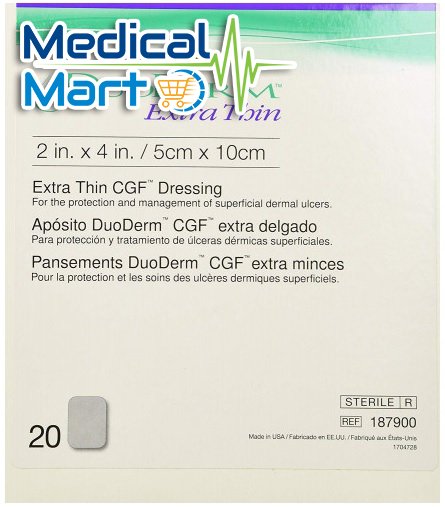 Duoderm Extra Thin CGF Dressing, 5CM X 10CM (2" x 4") - for the protection and management of superficial dermal ulcers. Designed to reduce the risk of further skin breakdown due to friction