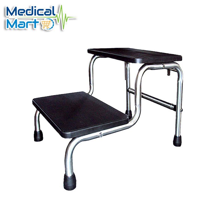 Foot Stool, Double Step. (L 52 cm x W 40 cm x H 35 cm), Frame made from non-magnetic stainless steel tube Step made from MDF, covered with anti slip rubber pad