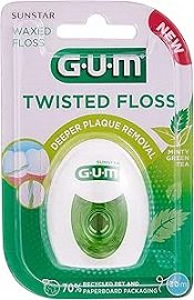 Gum Twisted Floss is a two twisted strings cover 30% more flossing surface. They help your patient clean deep where plaque tends to hide. It is a great choice to get your patients to floss every day. A burst of minty green tea every time your patient flosses.