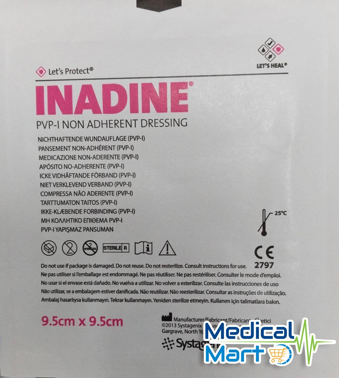 Inadine, consists of a knitted viscose fabric impregnated with a polyethylene glycol (PEG) base containing 10% povidone-iodine, equivalent to 1.0% available iodine. In the presence of wound fluid, the povidone-iodine, a potent antimicrobial agent with a broad spectrum of activity, is readily released from the PEG base. The dressing, which is designed as a low adherent wound contact material, is orange in colour. Unlike paraffin or lanolin used in manufacture of some medicated paraffin gauze type products, the PEG base used in the production of Inadine is water-soluble and easily removed from the skin or wound surface.