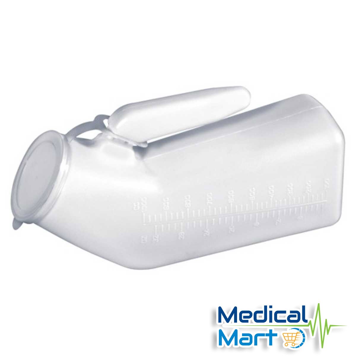 Male Urinal is essential for anyone who has trouble getting out of bed as it is lightweight, durable and easy to clean. Not only is this urinal designed to prevent spills but the sturdy grip makes for easy handling and can be used in several positions by the patient. The cap helps to confine odors and there are graduation marks on the product to measure output.
