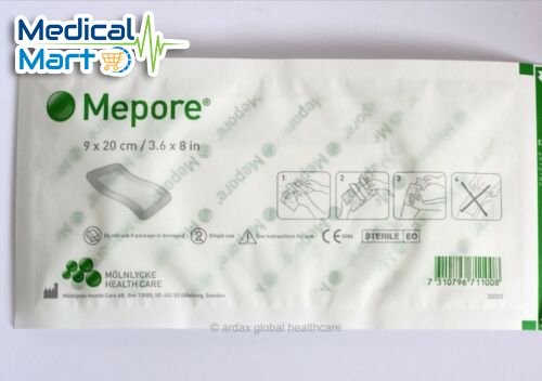 Mepore is a breathable, absorbent, self-adhesive dressing for a wide variety of wounds with low to moderate exudate levels – such as surgical wounds, cuts, and abrasions. The dressing fixes gently and securely to the skin with a skin-friendly, water-based adhesive, and it’s air permeable to prevent maceration of the wound.