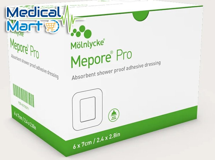 Mepore Pro is a self-adherent, absorbent and breathable dressing for low to moderately exuding wounds. The outer film layer protects the wound from both water and contamination so it can be worn while showering. The absorbent wound pad has a low-adherent wound contact layer so that it’s comfortable to wear and stays in place. Its skin-friendly, water- based, solvent-free adhesive provides a gentle and secure fixation.