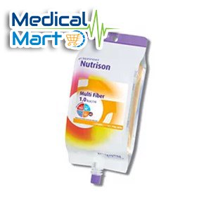 Nutrison Multi Fibre : water, maltodextrin, vegetable oils (sunflower oil, rapeseed oil, MCT oil [coconut oil, palm kernel oil]), dietary fibres (soy polysaccharides, resistant starch, inulin, arabic gum, cellulose, oligofructose), whey protein (from cow’s milk), cow’s milk protein caseinate, pea protein, soy protein, emulsifier (soy lecithin), acidity regulator (citric acid), sodium chloride, fish oil, potassium hydroxide, tri calcium phosphate, di potassium hydrogen phosphate, potassium citrate, carotenoids (contains soy)(b-carotene, lutein, lycopene), calcium hydroxide, potassium chloride, choline chloride, magnesium hydroxide, sodium L-ascorbate, magnesium hydrogen phosphate, ferrous lactate, zinc sulphate, nicotinamide, retinyl acetate, DL-a tocopheryl acetate, copper gluconate, manganese sulphate, sodium selenite, calcium D-pantothenate, chromium chloride, cholecalciferol, D-biotin, thiamin hydrochloride, pteroylmonoglutamic acid, pyridoxine hydrochloride, riboflavin, potassium iodide, sodium fluoride, sodium molybdate, phytomenadione, cyanocobalamin.