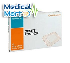 Smith & Nephew OPSITE Post-Op is a transparent waterproof dressing with absorbent pad indicated to dress acute wounds such as abrasions, post-operative wounds, minor burns, cuts and lacerations where levels of exudate are low/moderate. Latex free.