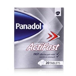 Panadol Actifast is absorbed twice as fast as regular Panadol tablets,helping you to get back to the things you enjoy, more quickly. When you want fast pain relief from headaches and toothaches choose Panadol Actifast. Like other Panadol tablets, Panadol Actifast is gentle on the stomach when used as directed. Panadol ActiFast provides fast, effective relief of pain associated with: Headaches, including Migraine, Muscular Aches & Pains, Joint Pain/Osteoarthritis, Period Pain, Toothaches, Sore Throat Panadol Actifast also relieves fever.