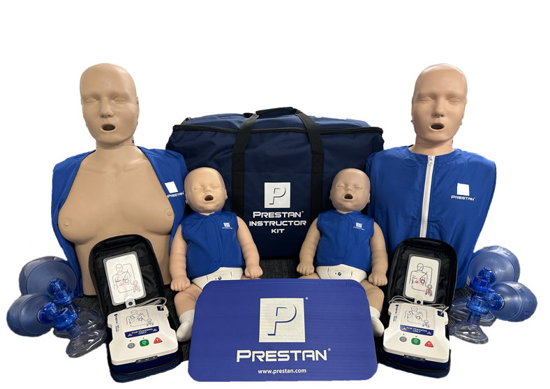 Part # PP-INSTRKIT-1-MS The PRESTAN Instructor Kit combines our most popular CPR training manikins (one Professional Adult, one Professional Female & two Professional Infants) along with two AED UltraTrainers® and a collection of the most commonly used CPR Training Supplies in one single collection, packaged in a heavy-duty canvas bag with wheels & telescoping handle for enhanced portability.