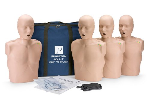 Prestan Professional Adult Jaw Thrust CPR-AED Training Manikins 4-Pack (installed with Rate Monitor and Depth Clicker for CPR Feedback and AA Batteries not included).