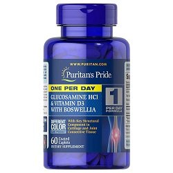 Glucosamine HCl: 1,500 mg,Boswellia serrata Extract: 100 mg and Vitamin D3 (as Cholecalciferol): 10 mcg (400 IU)