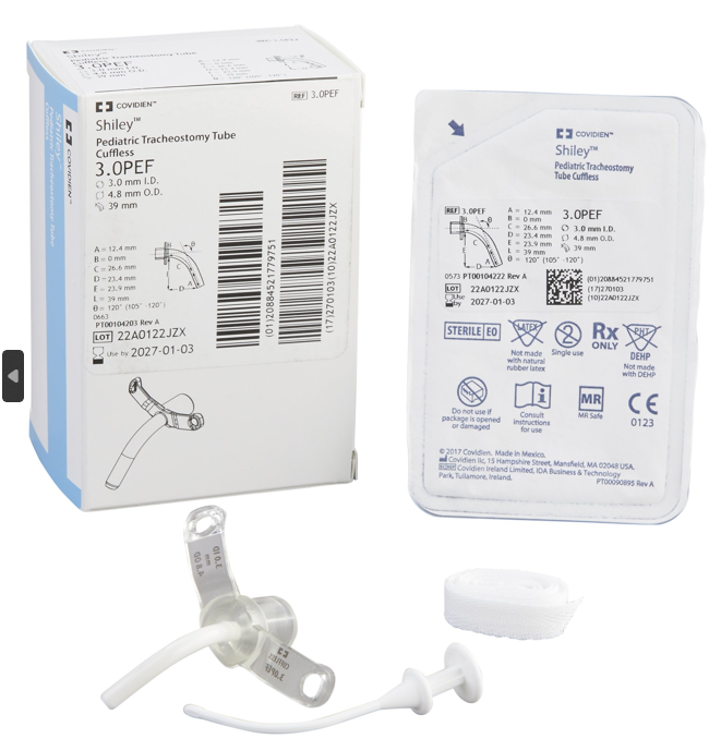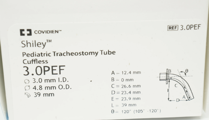 Shiley™ Pediatric Tracheostomy Tubes Cuffless All Shiley™ neonatal and pediatric tracheostomy tubes have a recessed area behind the connector to provide enhanced comfort Tubes beginning with the letter P (PEF, PCF, PELF, and PLCF) feature a higher flange angle for pediatric patients.