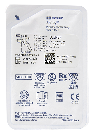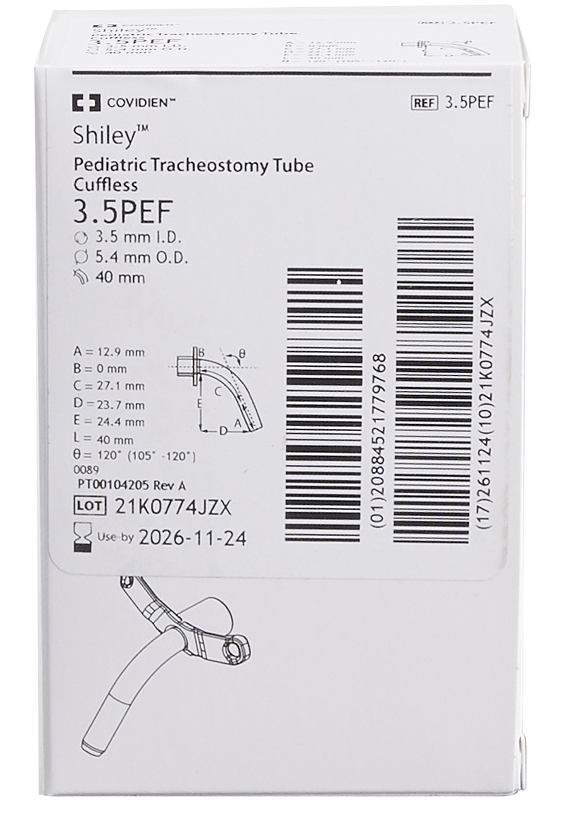 Shiley™ Pediatric Tracheostomy Tubes Cuffless All Shiley™ neonatal and pediatric tracheostomy tubes have a recessed area behind the connector to provide enhanced comfort Tubes beginning with the letter P (PEF, PCF, PELF, and PLCF) feature a higher flange angle for pediatric patients.