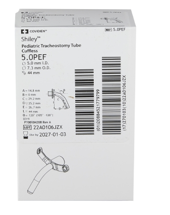 Shiley™ Pediatric Tracheostomy Tubes Cuffless All Shiley™ neonatal and pediatric tracheostomy tubes have a recessed area behind the connector to provide enhanced comfort Tubes beginning with the letter P (PEF, PCF, PELF, and PLCF) feature a higher flange angle for pediatric patients.