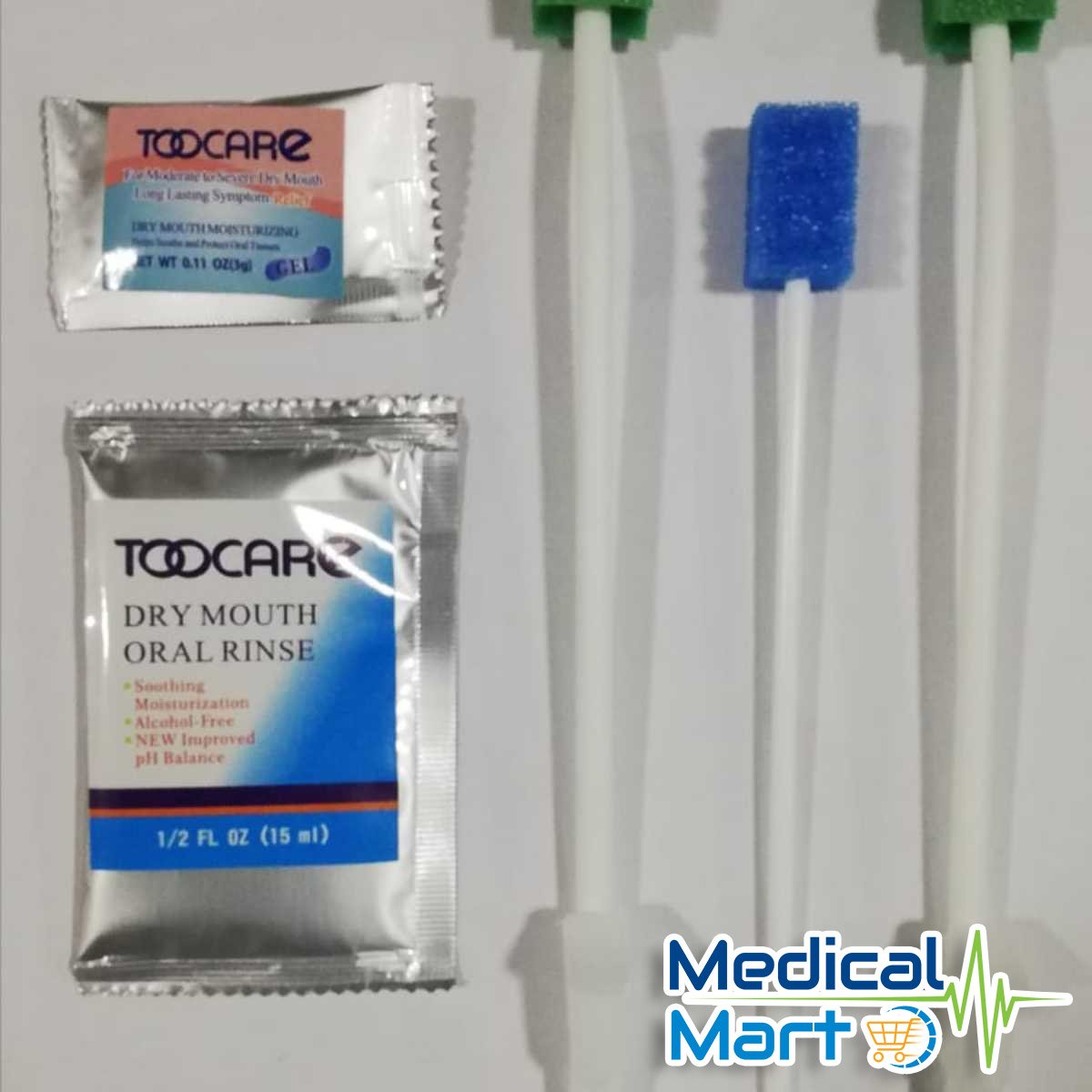 - Kit contains two suction swabs treated with dentifrice (sodium bicarbonate), one 15 mL mouth rinse packet, 1 DenTips disposable untreated oral swab and a 3 g packet of mouth moisturizer gel.