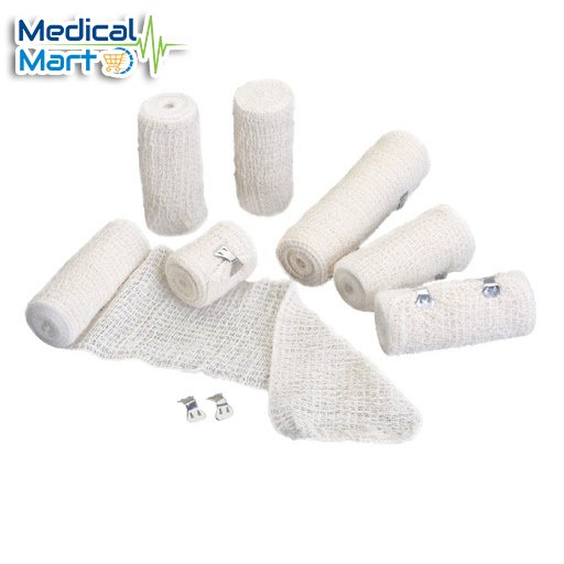 Stretchy and supportive First Aid Bandage Conforms to body shape and includes bandage clips.